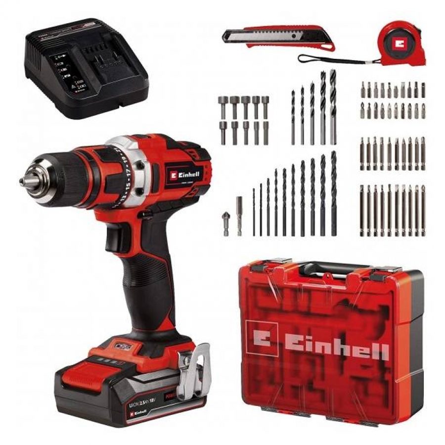 Einhell TE-CD 18/40 Li + 69 KIT Akumulatorska bu[ilica 18V, 1500 rpm, 40Nm, 1x2,5Ah